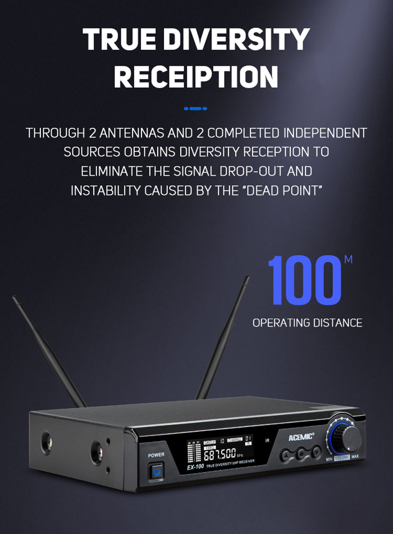 • True Diversity Technology: Utilizes dual antennas to maximize range and minimize signal dropouts, providing consistent audio quality.