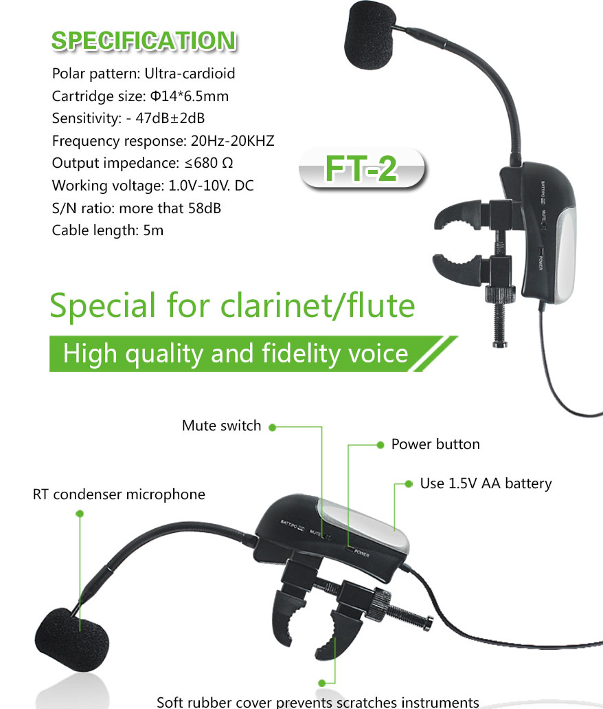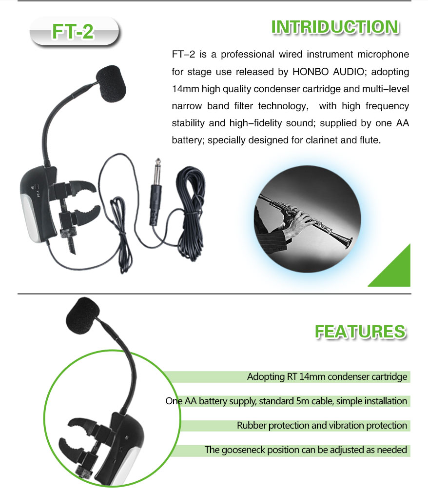 Elevate your performance with the FT-21 wired clarinet microphone—crafted to let your instrument shine in every setting.
