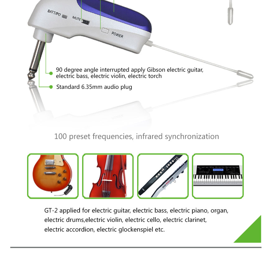 Designed for electric guitar, bass, keyboard, violin and all 6.35mm jack electric instruments.