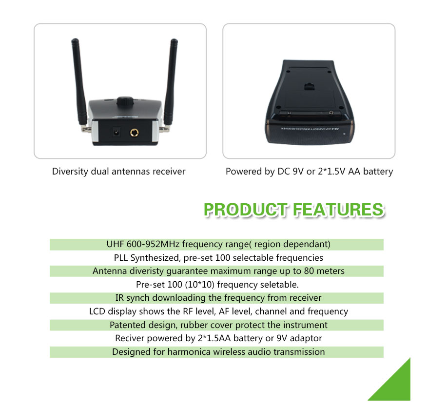 Antenna Diversity Wireless Harmonica Microphone for Stage