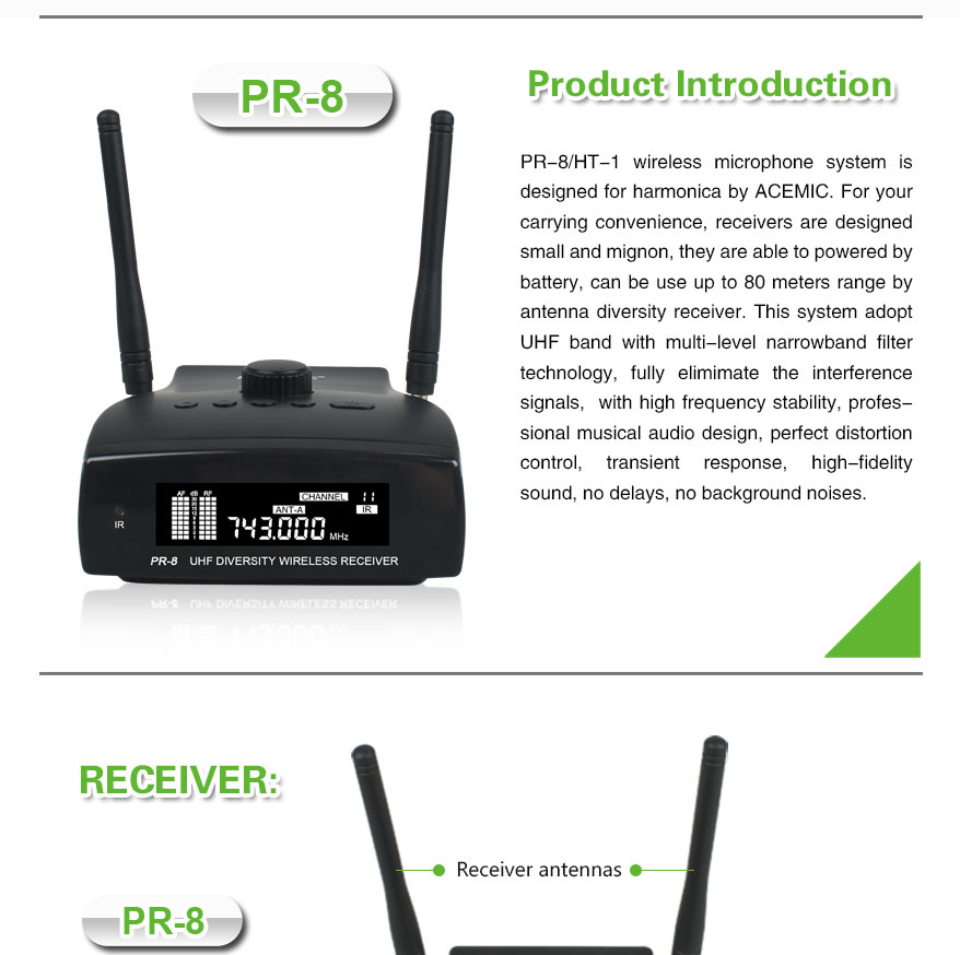 PR-8/HT-1 – Professional Wireless Harmonica Microphone with Long-Range Freedom