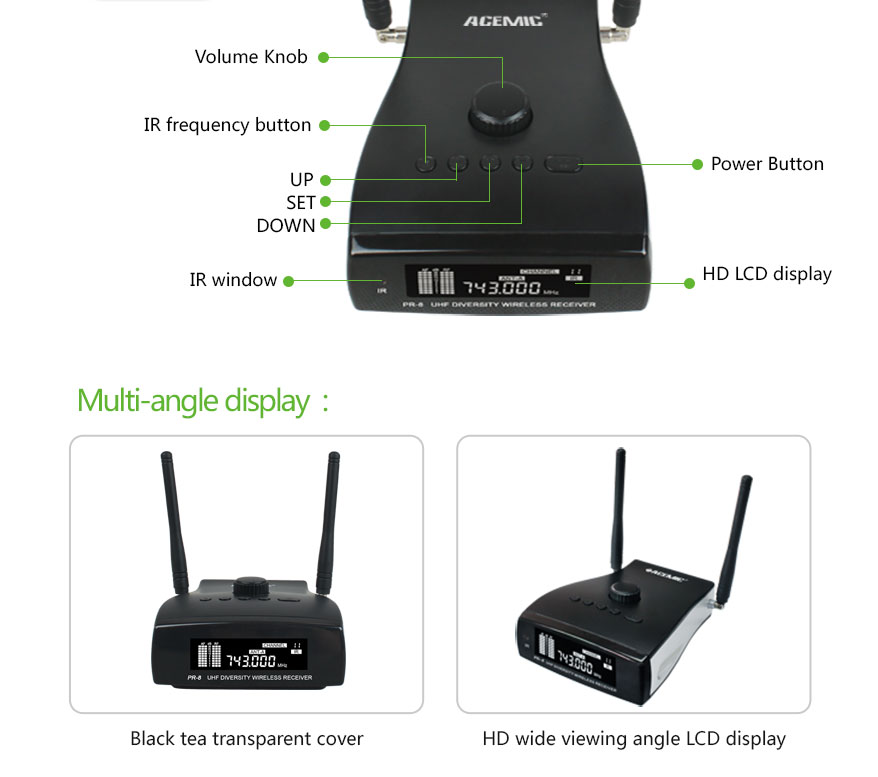 • UHF Wireless Transmission – Reliable, high-fidelity audio with minimal latency and strong signal stability.