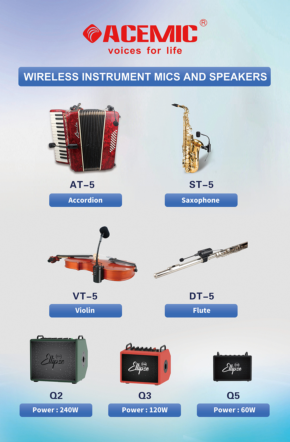 Can be used with electronic instruments, wired microphones and wireless microphones