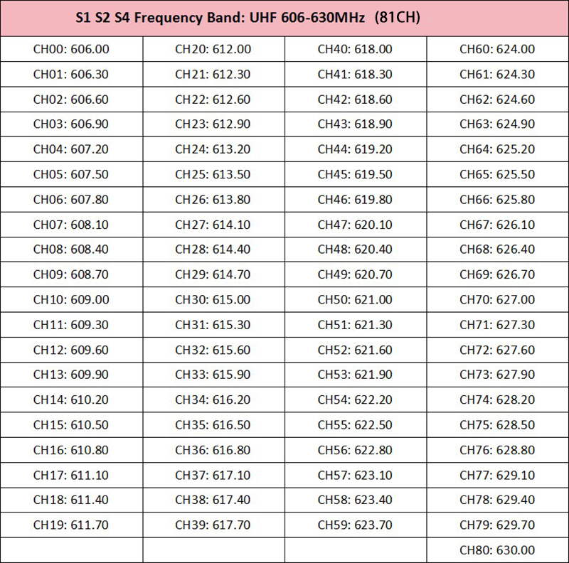 Specifications:Frequency Range: UHF 600-937 MHz (region dependent)Receiver (bodypack)Frequency range: UHF 606-630 MHz
