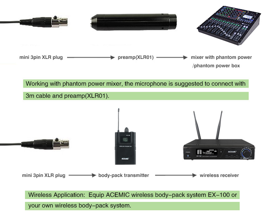 SpecificationsElement: CondenserPolar pattern: SupercardioidSensitivity: - 45db±3dBFrequency response: 20-20 KHZOutput impedance: ≤680 kΩWorking voltage: Phantom 48V or DC 1.5V- 10VSignal-to-noise ratio: 78dBCable length: 1.2m standard, 3m optional